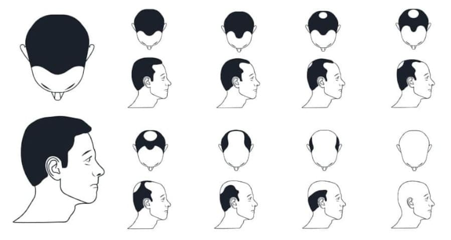 Questa scala di misurazione della calvizie, sviluppata nel 1951 dallo statunitense Hamilton e successivamente perfezionata da O’Tar Norwood nel 1975, permette d’identificare i principali stadi dell’alopecia androgenetica: